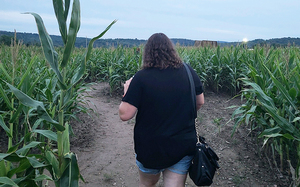Navigating the corn maze with an old fashioned map.